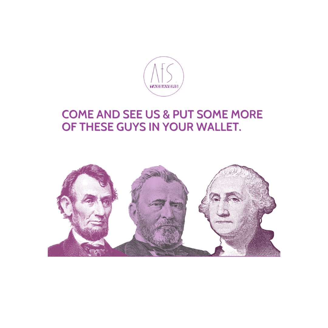 Join over 4000 annual clients and file your taxes with AFS Taxsavers. File online or in person- with a team that makes filing fast, accurate, and completely stress free.